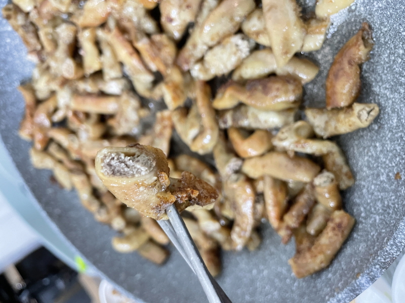 곱창이 양이 많고 팬에 적을 때는 골고루 구우려면 어떻게 해야 하나.