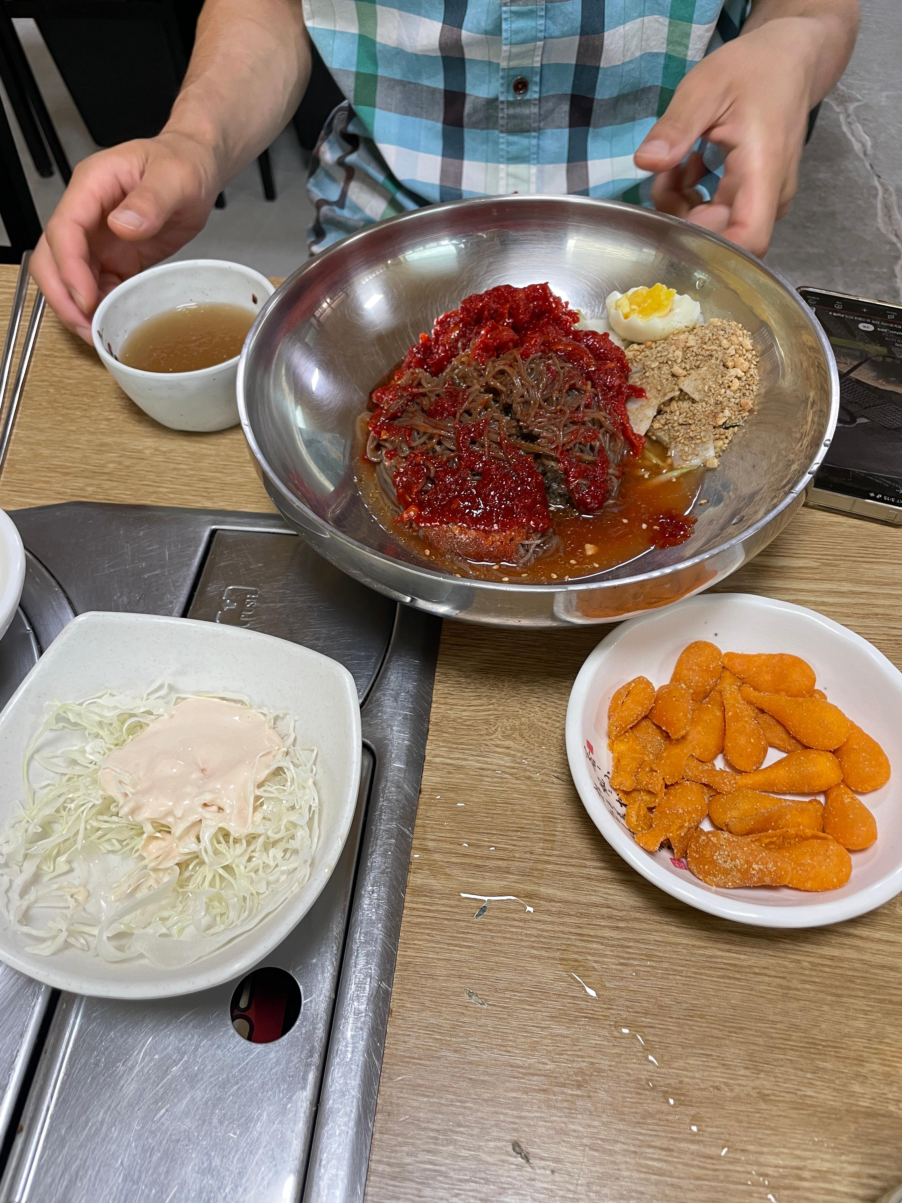 메뉴는 다양하지만, 어떤 음식을 선택하더라도 기본적인 내공이 느껴진다는 점이 특징입니다. 냉면이나 국밥뿐만 아니라 치킨을 시켜도 바삭하고 고소한 풍미가 일품이고, 사이드로 나오는 닭똥집 역시 씹는 맛과 간이 훌륭해 술안주로도 손색이 없습니다.