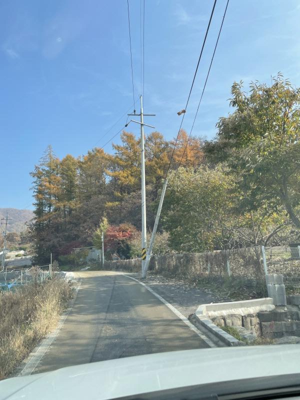 자주 다니던 길목 전봇대 뿌리가 반은 뽑혀 있어서 양평 군청에 전화를 했더니
